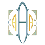 This Monogram Blend, Ornamental 1, is composed of elements from three of our Monogram Sets - Oval 1, Diamond 4 XL and Monogram Flourishes 1: year 1932. There is a design that can be used as a template for easy layout placement in your embroidery software program. The left and right brackets function to frame a three-letter monogram. This large monogram is just as effective with only the letters.