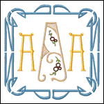 This Monogram Blend (Ornamental 2) is composed of elements from three of our styles Sets - Arts & Crafts 6, Gothic 15 and Monogram Frames 1:Frame A. There is a template design that can be used as for easy layout placement in your embroidery software program. The elements, blended together, emphasize the circular aspects of each part.