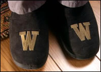 Monogram: Mr. Wilson slips into embroidered monogrammed slippers with the initial W on each.