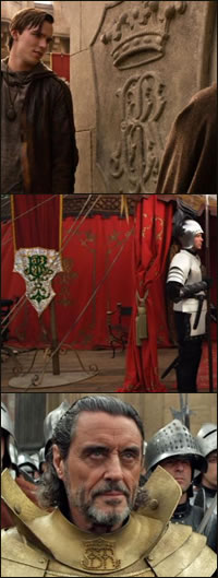 Scene: King Brahmwell (Ian McShane) has a royal insignia that is seen in various forms throughout the movie.
