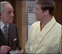 Scene: M ( Bernard Lee), joined by Miss Moneypenny ( Lois Maxwell), visit Bond in the very early morning to give him his assignment.