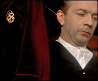 Scene: Poirot, Mr. Ratchett's Britrish valet Mr. Beddoes (John Gielgud) and the French conductor of the Calais coach (Pierre Paul Michel) discover the body. Unknown at that moment - that Mr. Ratchett is actually a gangster named Cassetti.