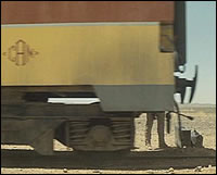 Scene: Dr. Madeline Swann (Lea Seydoux) is the daughter of a former member of Quantum (Spectre subsidiary). Bond rescues her from an assassination attempt, and the two travel by train to Spectre's center of operations in the Sahara desert.
