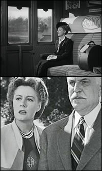 Scene: Top: Susan is having second thought about her ability to fit in with Sir John's aristocratic family, and leaves their manor house for London. Bottom: Susan and her father Hiram Porter Dunn (Frank Morgan) have a discussion in yard after a family picnic.